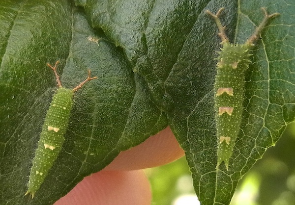 左が2令幼虫。右が3令幼虫。並べてみると、違いははっきりします。
