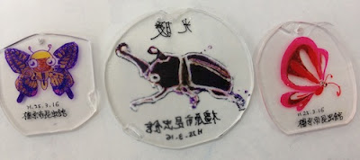 で、私のキーホルダー。ブログの表紙に使っている写真を描いてみました。型にはまらない子供たちの伸び伸びした作品と比べ、どうも、かみしもを着ているような絵になってしまいます。もう少し遊び心のある絵を描きたいとは思うのですが・・・
