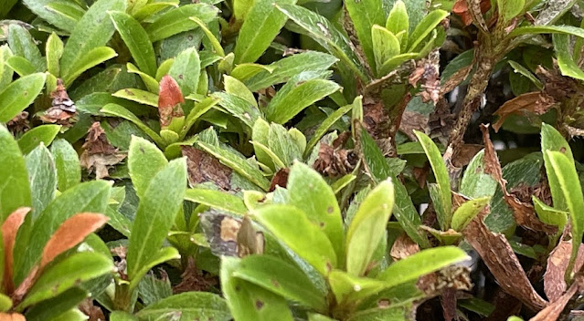 中庭では、ツツジにまたミノムシのおチビさんが大発生。